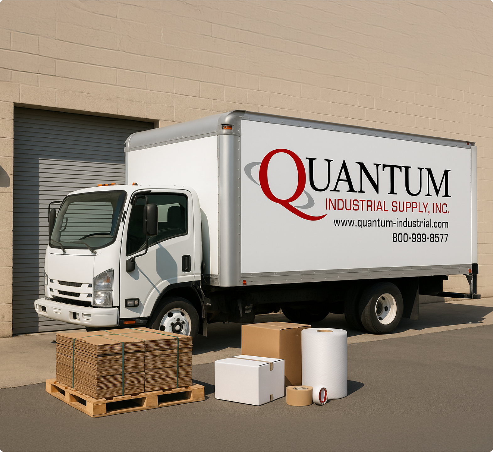 in Packaging and Shipping At Quantum Industrial Supply, we understand that your business needs more than just packaging—you need reliability, convenience, and trust. That’s why businesses throughout the area rely on us to deliver the right solutions at the right time. Whether you require customized packaging, local warehousing, flexible bulk pricing, or fast local delivery, Quantum provides the personal attention and dependable service that national suppliers simply can’t match. Let us show you the difference local commitment can make for your business.